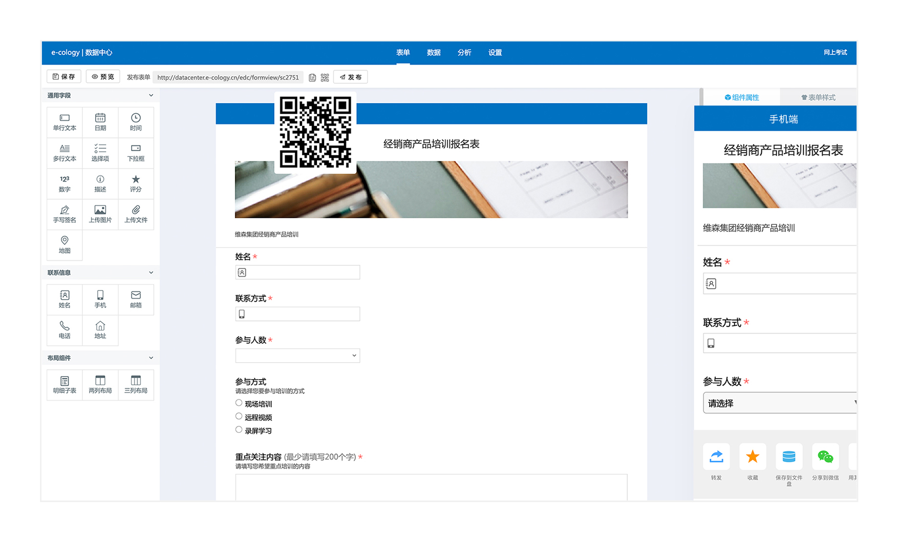 通過數(shù)據(jù)中心將內(nèi)部數(shù)據(jù)表單外發(fā),通過微信或第三方入口,由外部人員填寫數(shù)據(jù),并進行統(tǒng)計分析。